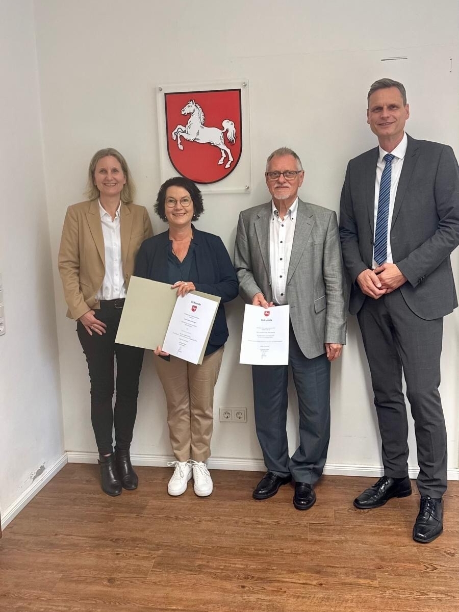 Mit Wirkung zum 01.10.2025 wurden Herr Heiko Mützelburg und Frau Susanne Bardenhagen für 5 Jahre zu Handelsrichtern ernannt. Die Ernennungsurkunden wurden ihnen durch den Präsidenten des Landgerichts feierlich überreicht. Zugleich verabschiedete er die bisherigen Handelsrichter Horst Stelling und Frank Thöle-Pries, deren Amtszeit zu Ende gegangen ist.